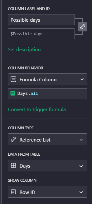 - Add a new “Possible days” column