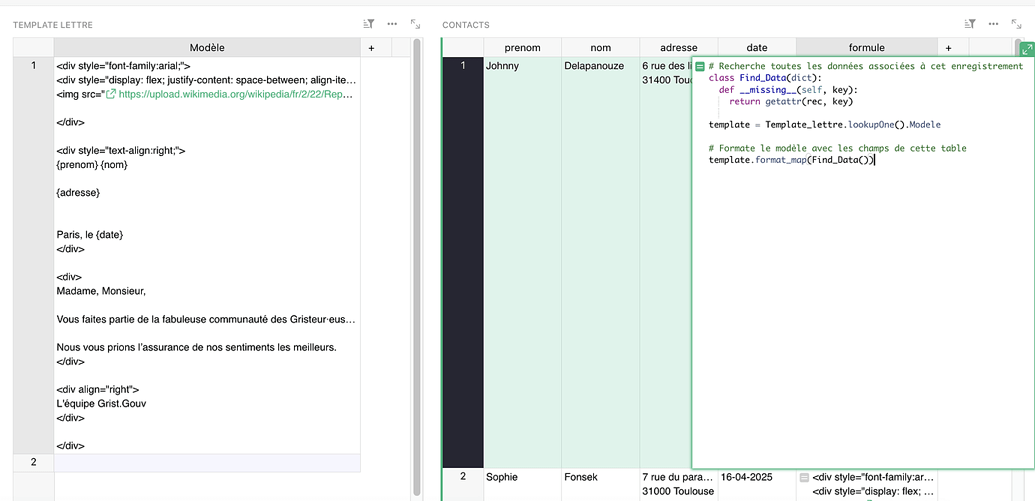 - The templates used for this post: Ex - Publipostage - Grist