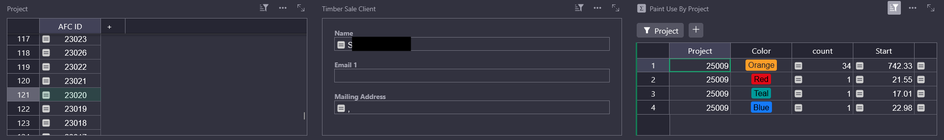 I also have a Paint Use table with one row per tank of paint used. It includes: