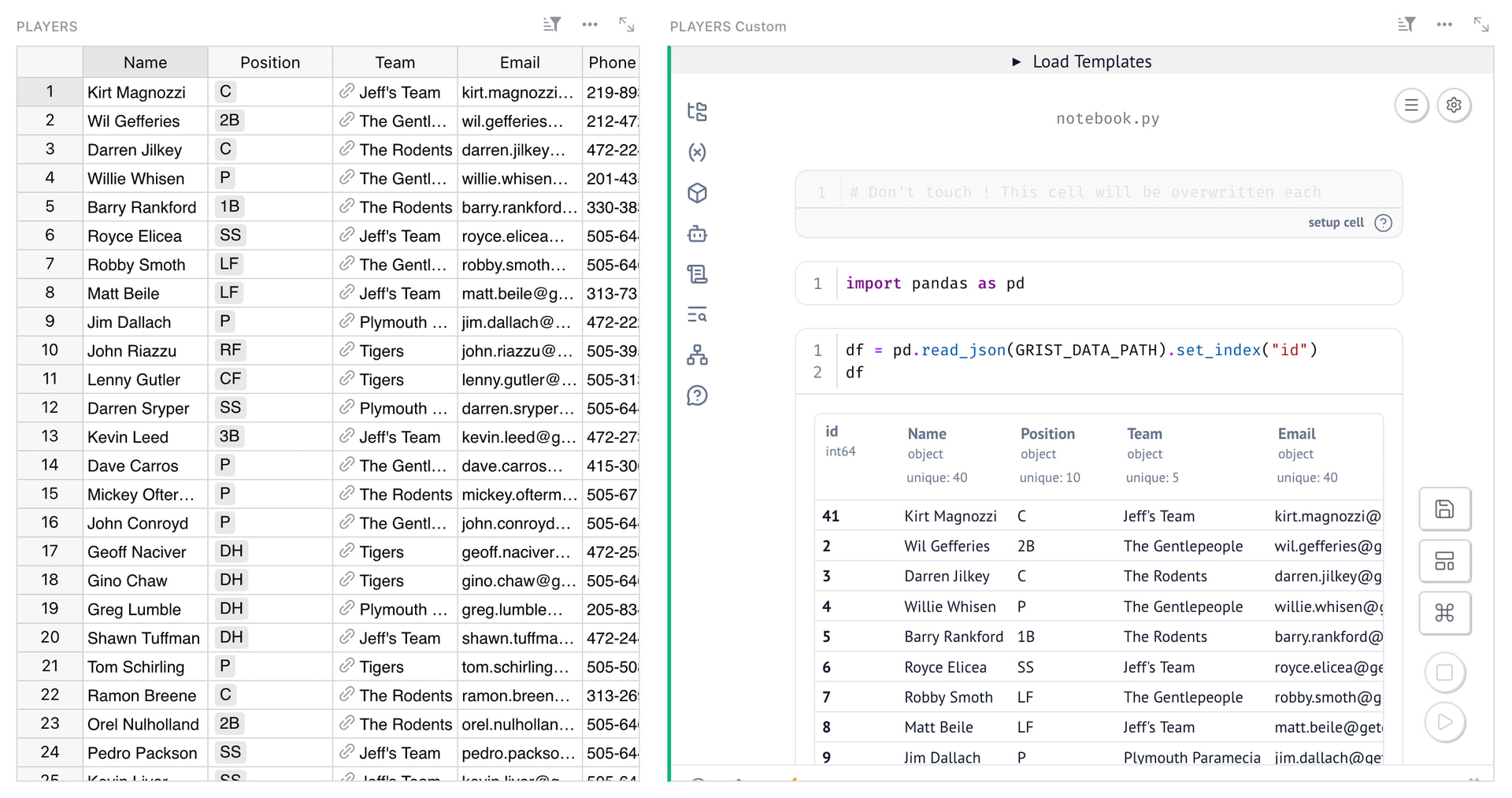 - But Antonin_P doesn’t stop there – they’ve also shared a very cool custom widget that enables Marimo Python notebooks within Grist, similar to Jupyter.