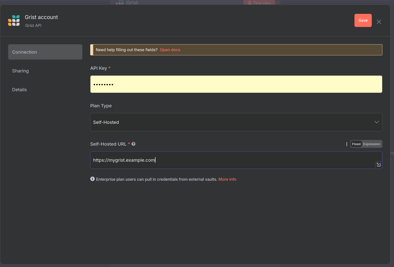 Building on the same issue, we were also considering moving eventually from Make.com to a self hosted instance of n8n, maybe inside of the same server or on a new one. However, it would seem n8n doesn’t provide a connection with self hosted Grist instances either, although we believe an http module could again do the trick.