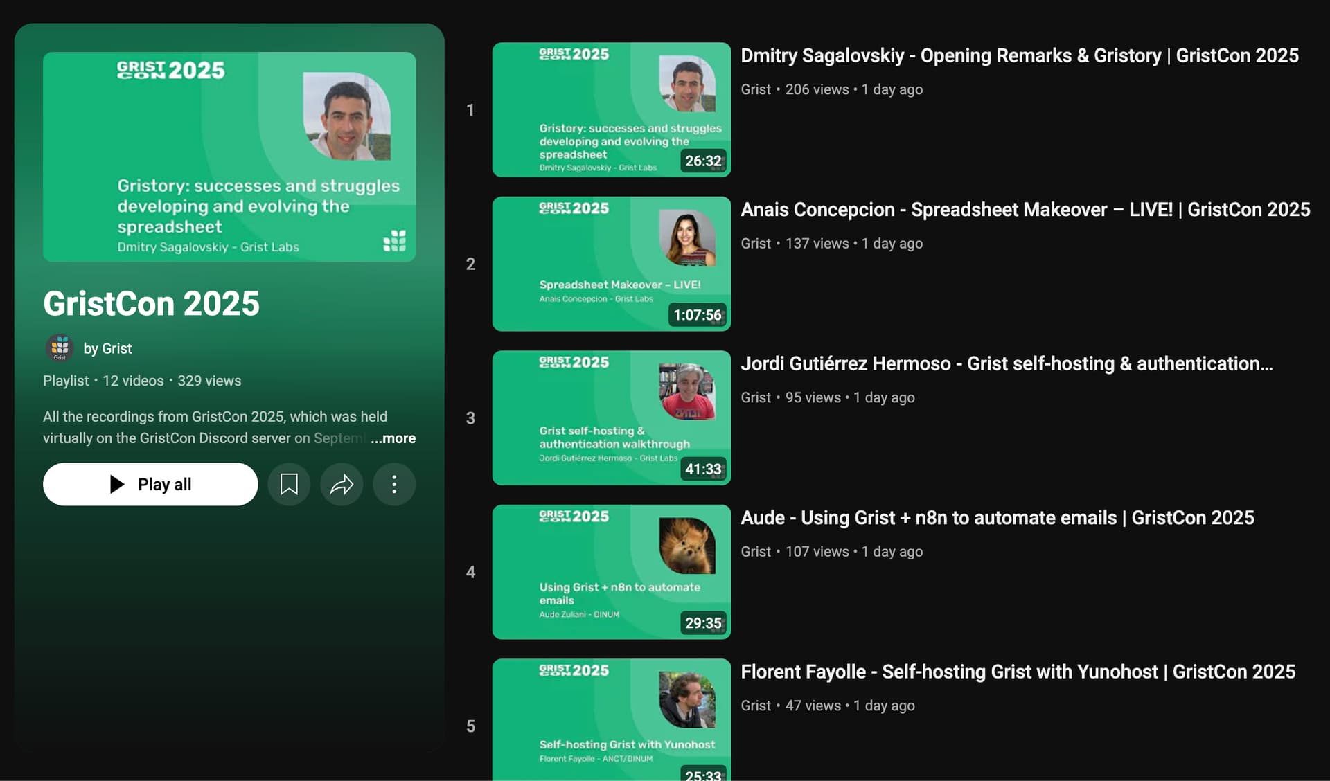 Our first-ever GristCon happened last week, and the recordings are already available to watch on YouTube. If you haven’t yet, take a look at some of the sessions for a peek into what’s going on with Grist inside and outside Grist Labs.