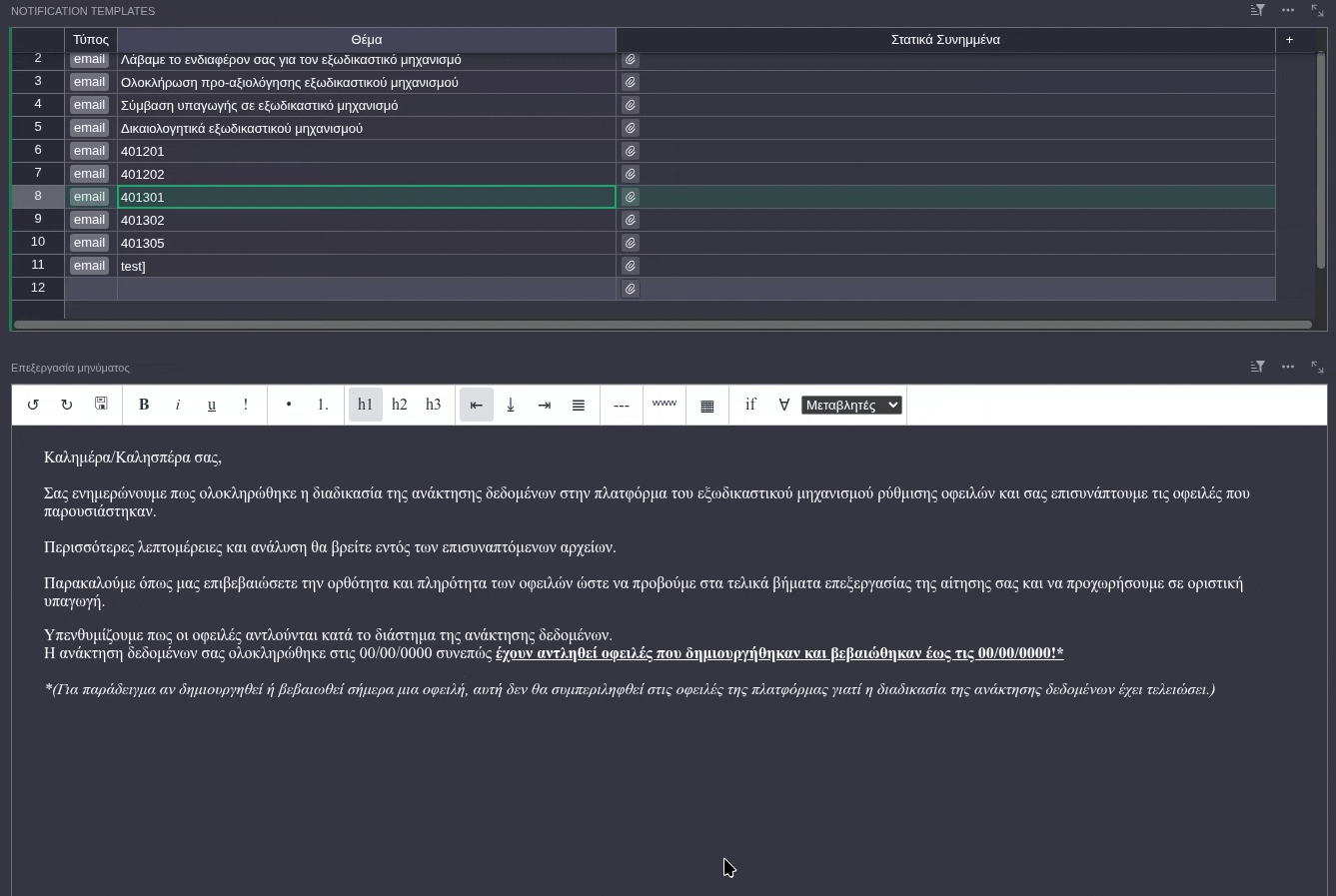 - Custom handlebars templates I needed (if/each blocks, and a list of variables)