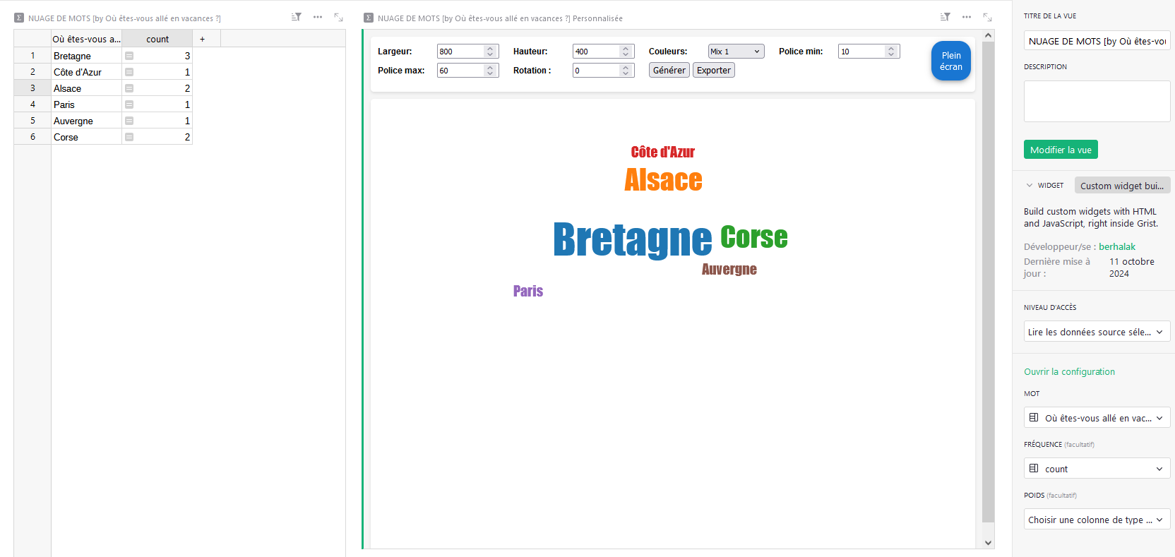 Following a request to create a collaborative wordcloud during workshops (like Wooclap or Kahoot), I created a small widget that meets the needs thanks to Grist.